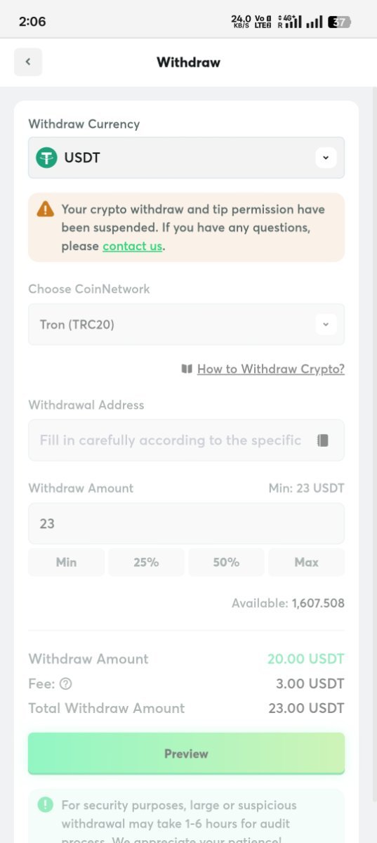 crypto withdraw and tip permission have been suspended