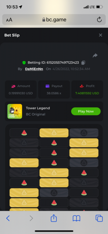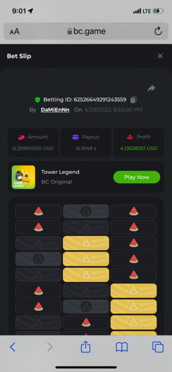 18. Tower legend: https://bc.game/sd/?sd=10J9S6IRUS5GCZ 38.0586x $0.20 bet https://bc.game/sd/?sd=10J9SDRDC6HJIR 15.84x $0.20 bet https://bc.game/sd/?sd=10J9SI6H6Y82S3 15.84x $0.20 bet https://bc.game/sd/?sd=10J9SKCLLQOYDV 15.84x $0.40 bet https://bc.game/sd/?sd=10J9SYWH5CO5QR 15.84x $0.10 bet https://bc.game/sd/?sd=10JI902ZFB9MOJ 38.0586x $0.26 bet https://bc.game/sd/?sd=10JI9BSEIUKM4Z 38.0586x $0.26 bet https://bc.game/sd/?sd=10JI9EII2T4QAB 16.91x $0.26 bet