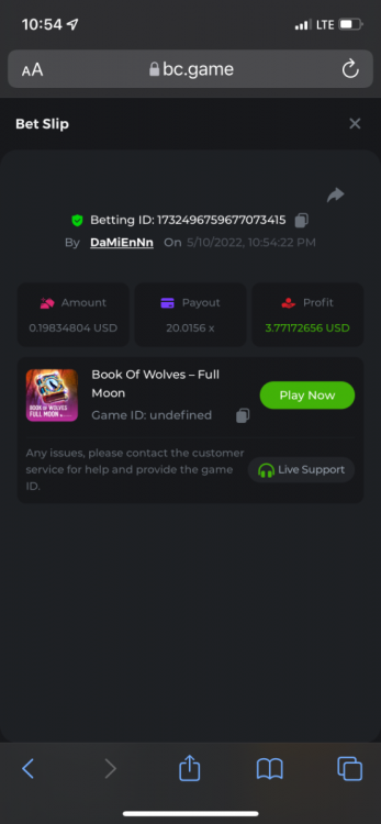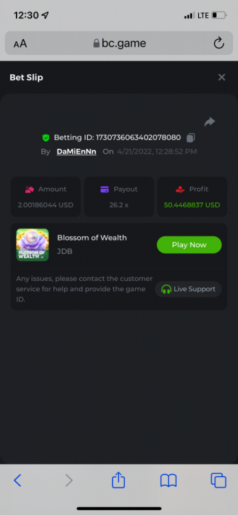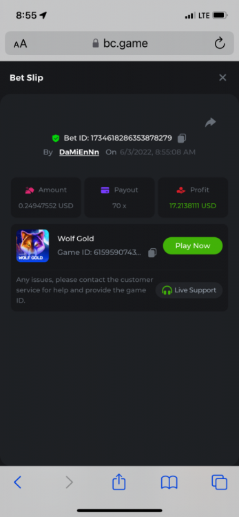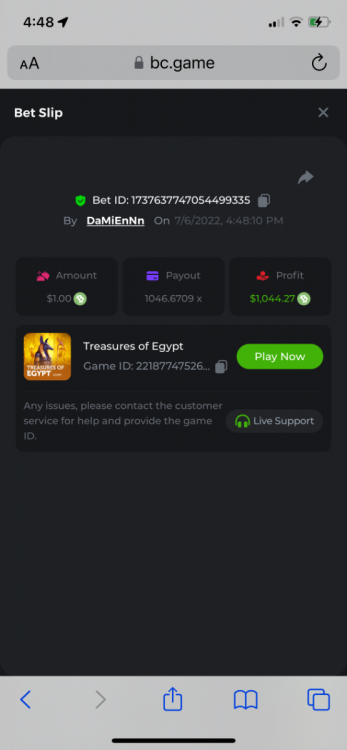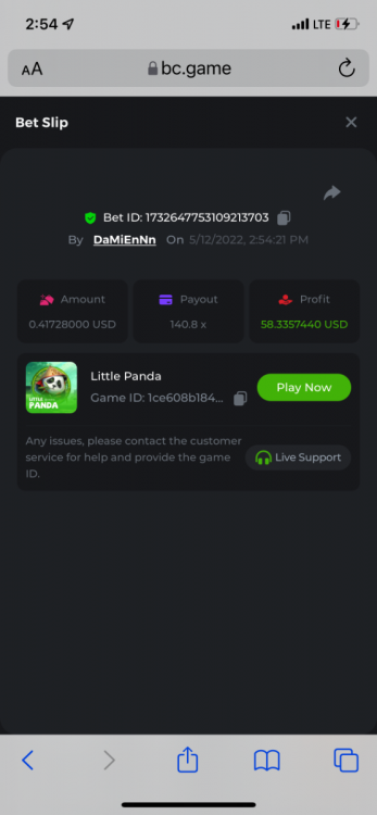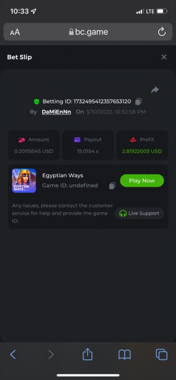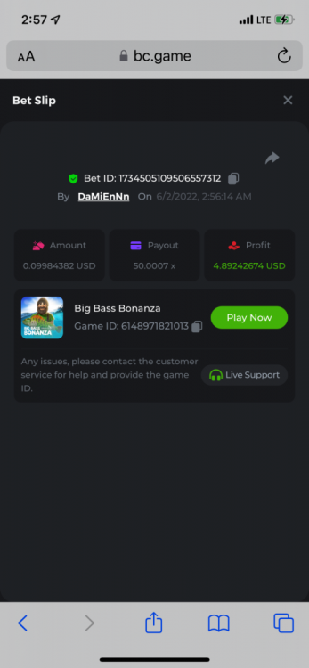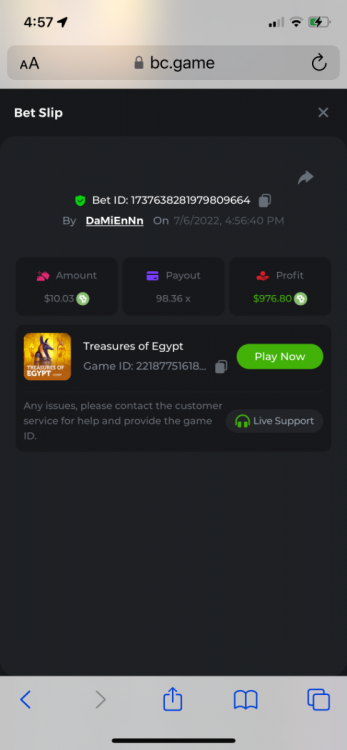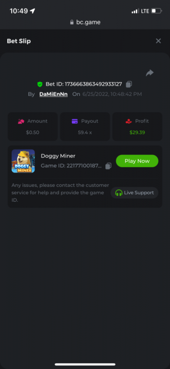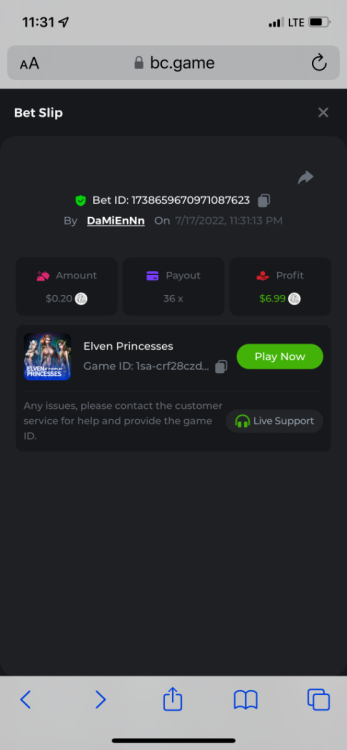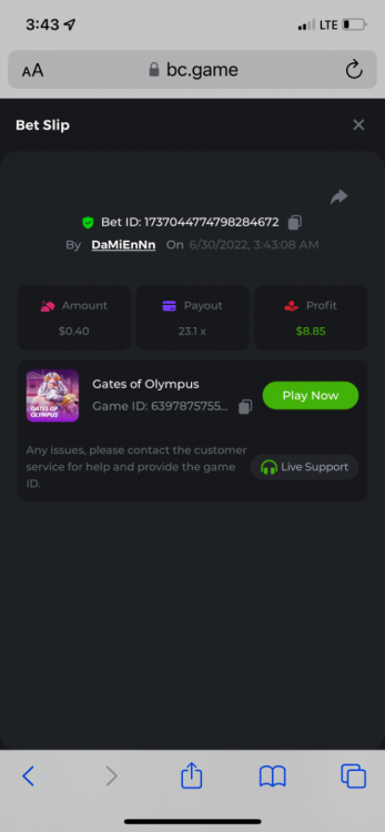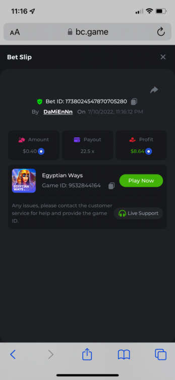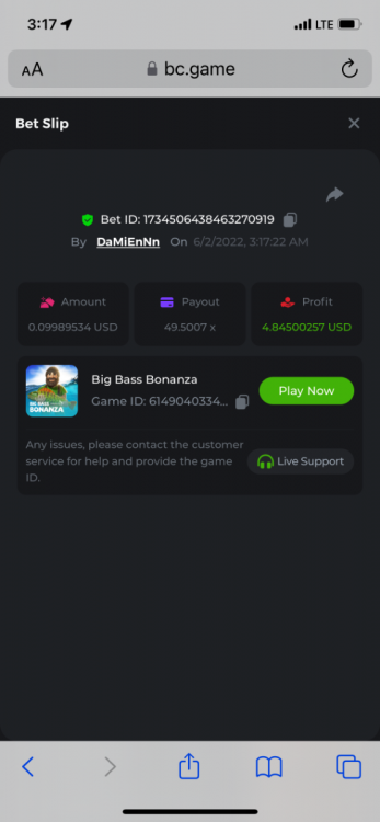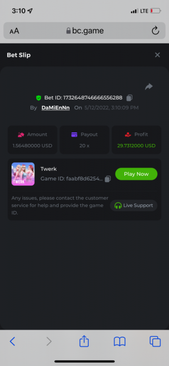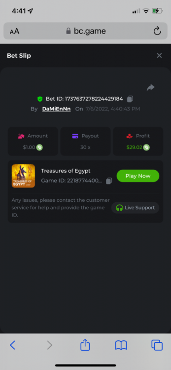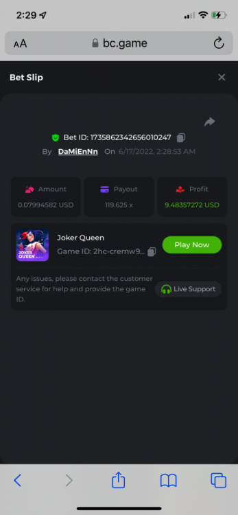 2. Limbo $2.00 bet 100x Limbo-Win 74011280171599051 7/15/2022, 9:47:30 AM $200.00 ☝lost bet ID link. So copied and pasted from my wallet transactions. https://bc.game/sd/?sd=10ORWSSCI1A58Z $4.00 bet 20x https://bc.game/sd/?sd=10ORXEQA92L4B7 $0.25 bet 500x Bounty.