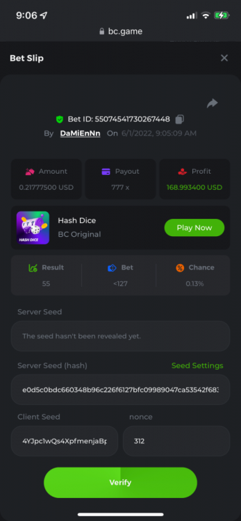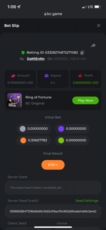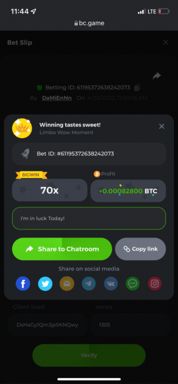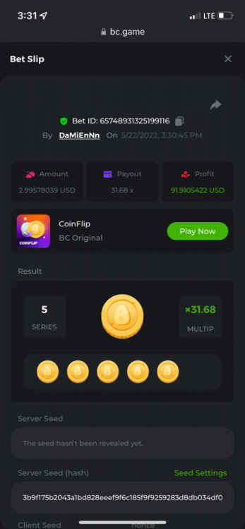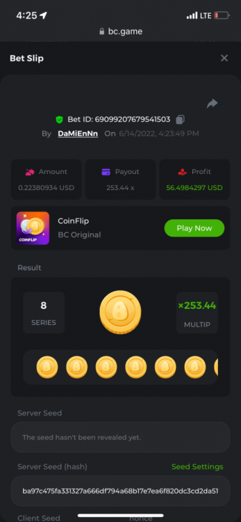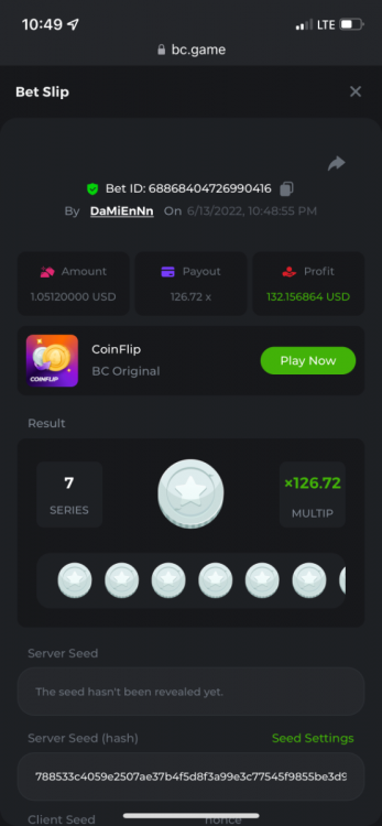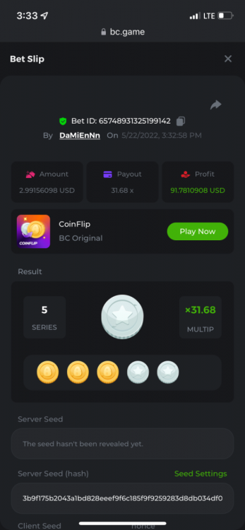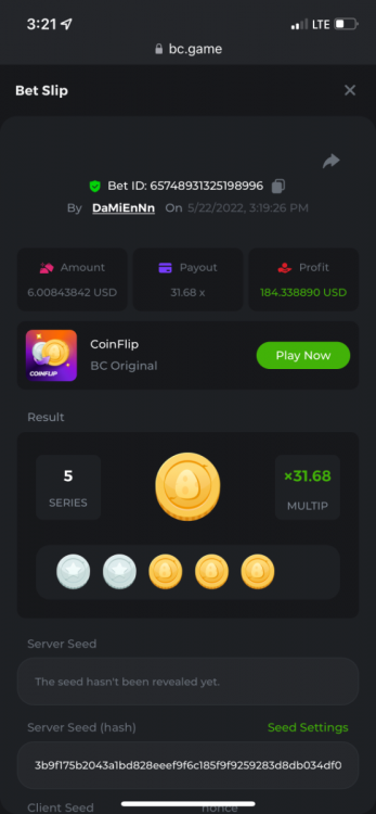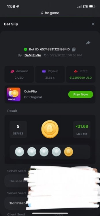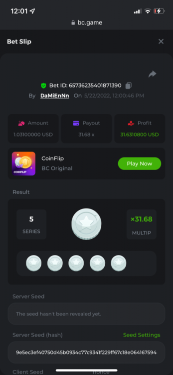 1. https://bc.game/sd/?sd=10OY9ADWZQX4B7 35.5x $0.1 bet https://bc.game/sd/?sd=10OY9YIM4Q25N7 36x $0.20 bet https://bc.game/sd/?sd=10OYBIE0SQC8B7 21.5x $0.10 bet