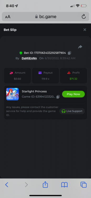 9. https://bc.game/sd/?sd=10MTQMU13052XF 141x $0.30 bet-wild cash https://bc.game/sd/?sd=10MTRLAUB89D03 119x $0.08 bet-joker queen https://bc.game/sd/?sd=10MTS38XHUFEVN 51x $0.36 bet-joker queen. BOUNTY https://bc.game/sd/?sd=10MTT8QSRB93PV 55x $0.40 bet-bc bonanza