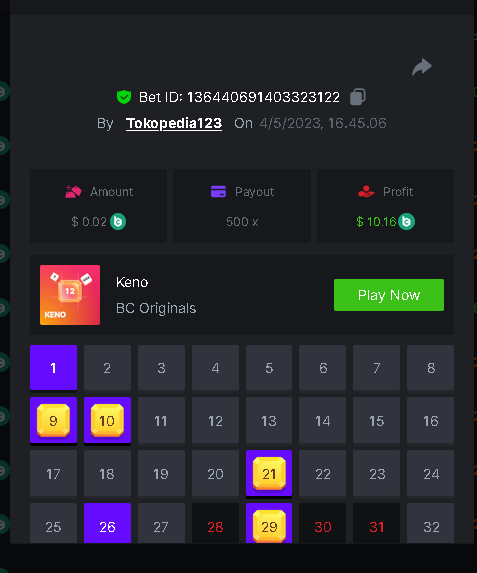 Maksypro Posted May 4, 2023 Share Posted May 4, 2023 Read Carefully Before Start To Hunt Daily Challenges #225 KENO Hunt : Win the highest multiplier Min Multiplier requirement 100x Min Level 4 ๏ธDuration Starting : Now End time : 23.59 UTC Time How to Join? Make screenshot + paste your bet link + UID or Profile link Any coin, with min bet 0.01 USD is allowed (jb/bb/bcl not allowed) Reward Prizes 1st Place.....$7 BCD 2nd Place.....$5 BCD 3rd Place.....$4 BCD 4th Place.....$3 BCD 5th Place.....$2 BCD ๐ต Winners will be announcing next day after Roll Point! 2 Link to comment Share on other sites More sharing options...